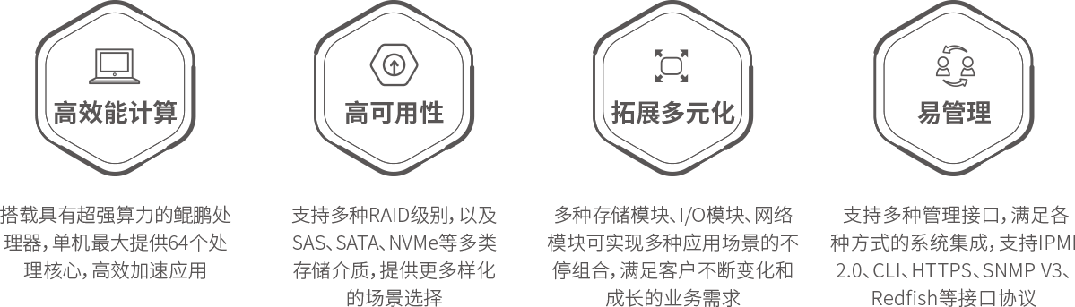 PA视讯国际 PA国际 KunTai R721高密服务器是神州数码基于鲲鹏基础硬件推出的新一代高密度计算设备。其具备高效能计算、安全可靠与开放生态优势。